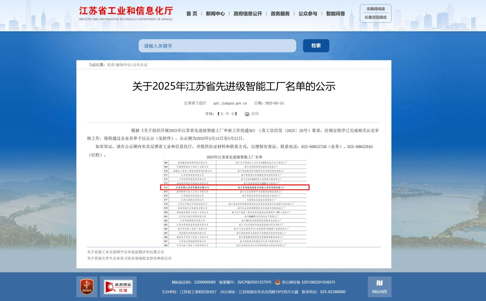 凯发K8国际草坪上榜2025年江苏省先进级智能工厂名单